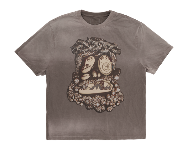 HEAVYWEIGHT 100% COTTON SHORT SLEEVE TEE WITH HEAVY WASH AND SPRAY TREATMENT • CACTUS JACK X TAKASHI MURAKAMI ARTWORK SCREEN PRINTED ON FRONT AND BACK